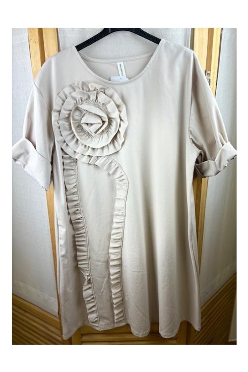 Vestido cuello redondo y manga francesa.Compos. 66% algodon 29% poliamide 5% elastano. Contorno pecho 120cm Contorno cadera 128 Largo 93 cm